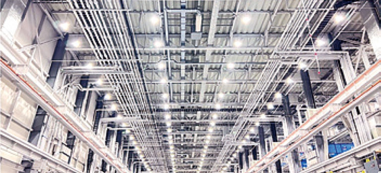 At the Tsukuba Plant, ceiling lighting, crane lighting, office and plant fluorescent lighting have all