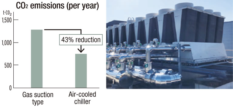 In December 2018, the plant upgraded the air-cooled heat pump chiller used for some of its air conditioning system to the model certified by the Ministry of the Environment as the most energy efficient. Compared to before, the Tsukuba Plant's total gas consumption decreased by approximately 35% and water consumption during summer also decreased by about a third. CO2 emissions decrease by approximately 500 tons as a result.