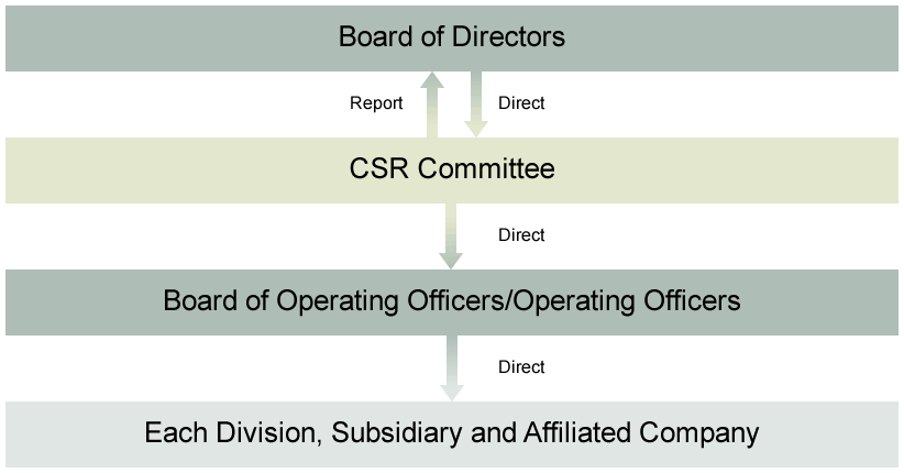 The Risk Management Committee has been established as an organization subordinate to the CSR Committee and undertakes initiatives in collaboration with other divisions. In identifying and evaluating risks, those involving all aspects of the business environment including climate-related items are extracted, and the frequency of occurrence and impact of those risks are then evaluated. The progress of the activities are discussed by the Risk Management Committee, with particularly important risks being reported to and discussed by the CSR Committee and the Board of Directors.