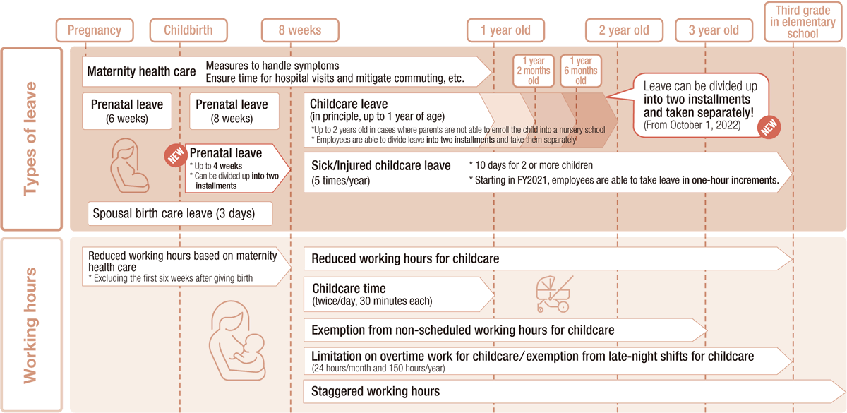 Komori positions supporting work-life balance and raising next-generation children as one of the focused initiatives of promoting diversity, equity, and inclusion, and has been increasing and improving systems compatible with life events. Various initiatives are being taken based on the belief, "If we provide a comfortable and fulfilling working environment for employees who are balancing work and childcare, they can exert their full potential."